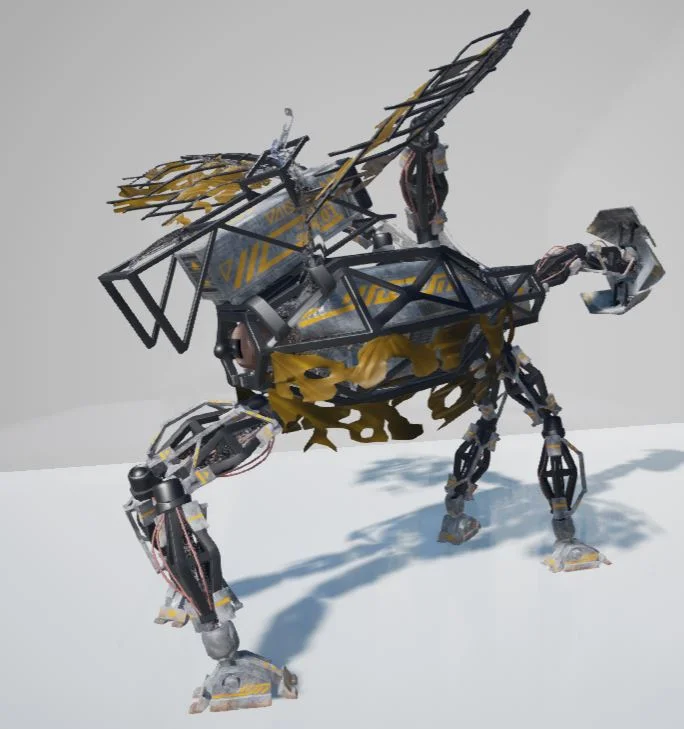 The other system is the combat system, during which the lattice creatures attack the city. They are designed to have parts break off in modular parts, and they also currently support APEX physics and behave differently depending on the amount of parts they still have intact. The AI's goal is to destroy as many buildings as they can, thus hurting the city's economy and making it harder for the player to advance.
